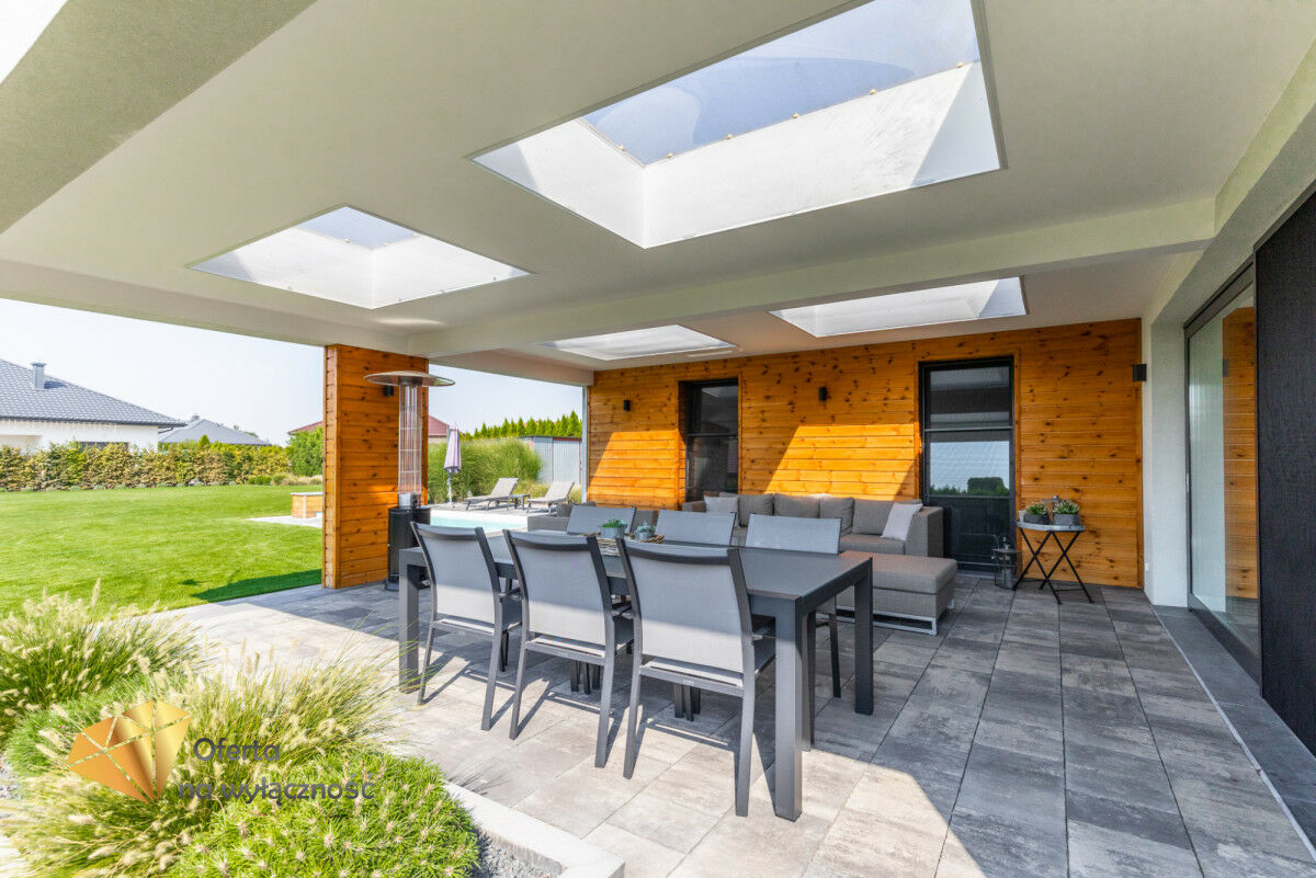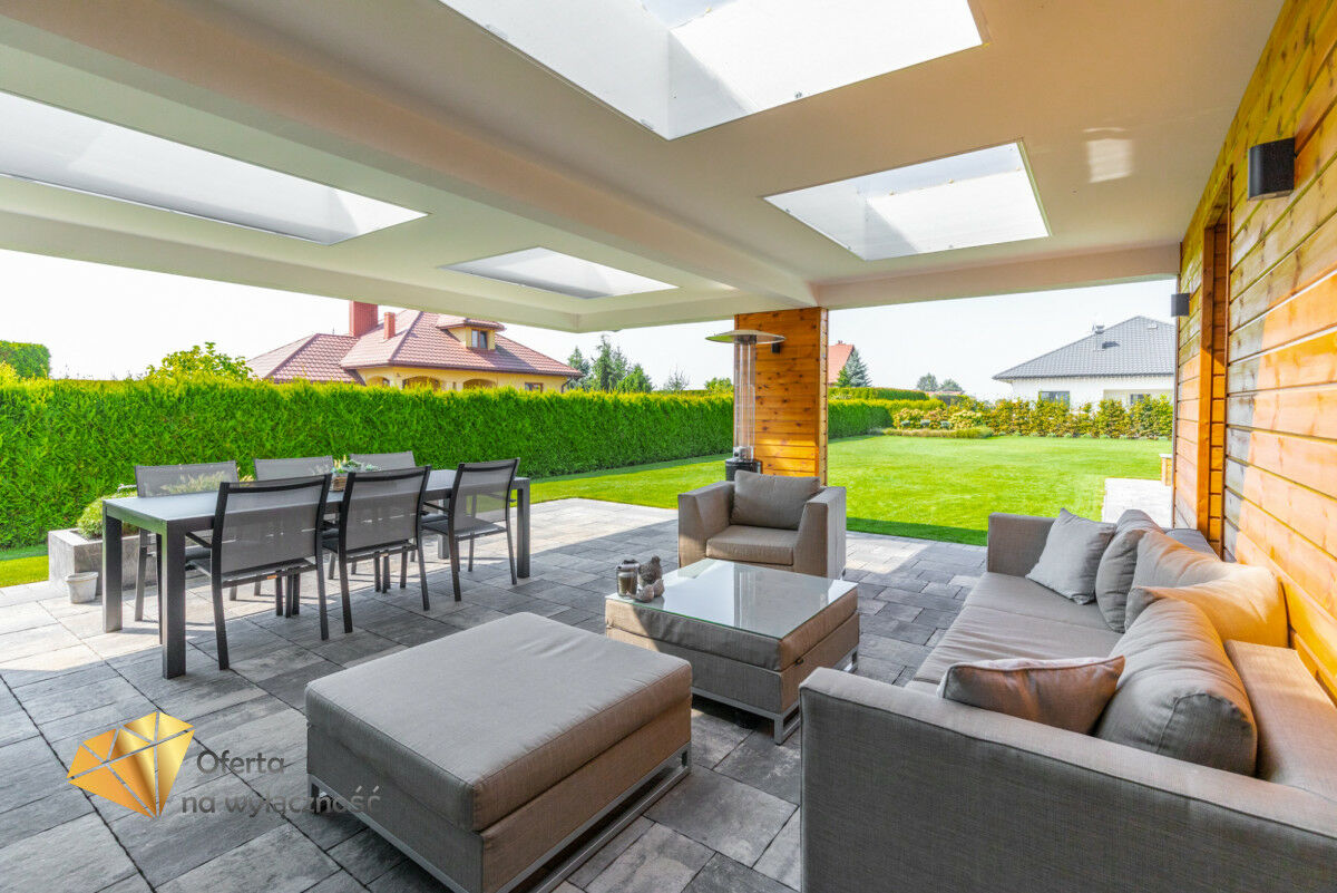 - Dodatkowe pomieszczenia: pomieszczenie gospodarcze, kotłownia, pralnia, dwa tarasy.